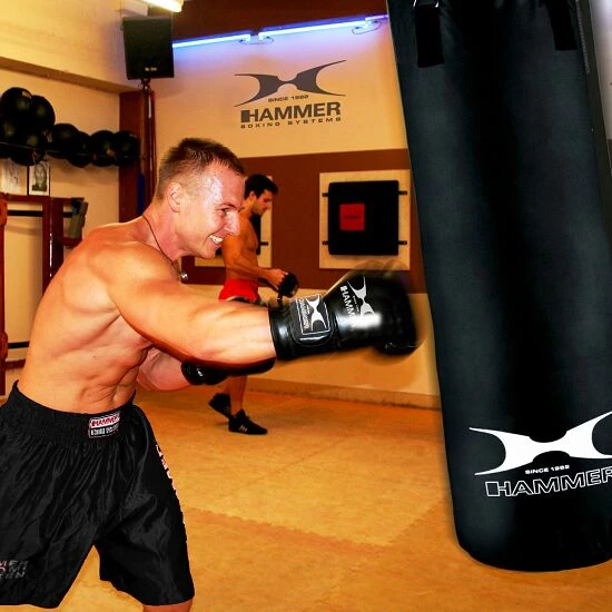 Das Hammer Box Set „Chicago“ lässt sich aufgrund seiner Länge von 100 cm und der hochwertigen Oberfläche perfekt für Kicktechniken mit dem Fuß nutzen. Die 10 Unzen schweren Boxhandschuhe aus einem hautfreundlichen Material aus Polyurethan (PU) eignen sich ideal für harte Schlagkombinationen. Eine Polsterung sorgt für einen angenehmen Tragekomfort und integrierte Luftlöcher verbessern das Handschuhklima. Durch den angenähten, verstärkten Daumen wird die Verdrehung des Gelenks verhindert. Inkl. Trainingscomputer, der jeden Schlag zählt, um später Ihre Trainingseinheit genau analysieren zu können.