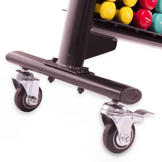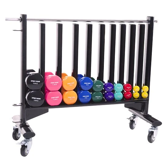 Der Sport-Thieme fahrbarer Ablageständer für Gymnastikhanteln ist eine platzsparende Aufbewahrungsmöglichkeit.