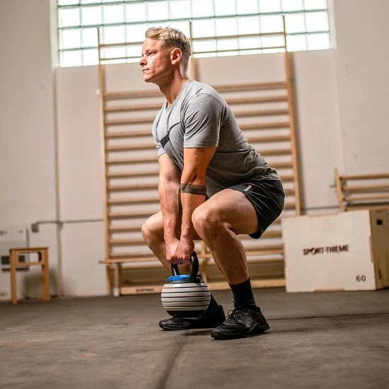 Die Sport-Thieme Kettlebell „Vario“: Mit nur einem Gewichtstrainer vielseitig trainieren wie im Fitnessstudio.